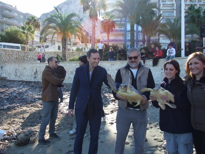 El alcalde de Calp, César Sánchez, y la directora general de Medio Natural, Salomé Pradas, han presentado las actividades del mes de diciembre del Parque natural del Penyal d'Ifac en la playa de la Fossa. En el acto, se han soltado dos tortugas marinas del centro de recuperación de fauna de la consellería.
