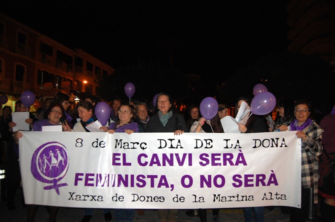 La Xarxa de Dones de la Marina Alta celebró hace unos días su día de la Dona. Una jornada reivindicativa que comenzó con una manifestación por la calle Marqués de Campo hasta la Glorieta donde se leyó el manifiesto que habían preparado con el lema "El canvi serà feminista o no serà".