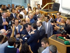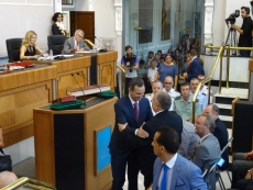 Mientras, Fullana, en un discurso menos institucional y cargado de mensaje político afirmó “hoy es un día importante para la derecha valenciana. Hoy es el día en qué el campismo y el zaplanismo se vuelven a abrazar. El día en que un exregidor del PP zaplanista que fue expulsado del partido le da la presidencia al hijo predilecto de Camps y Cotino”. y recordó las veces que Sánchez desde su condición de diputado autonómico ha votado -a su parecer- en contra de los intereses de los alicantinos como el cierre de Canal 9, el rechazo a la creación de una comisión de investigación por el accidente de Metro de Valencia o trama Gurtel, entre otras. Fullana y sus tres compañeros de Compromis hicieron constar durante la toma de posesión del acta de diputado sus principios republicanos y en “cumplimiento de la ley” juró la Constitución.