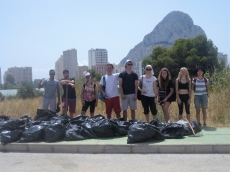 Un grupo de voluntarios de la asociación De Amiticia ha recogido 22 bolsas de vidrio de les Salines, lo que equivale a 250 kilos que se encontraban en el área protegida de flora.