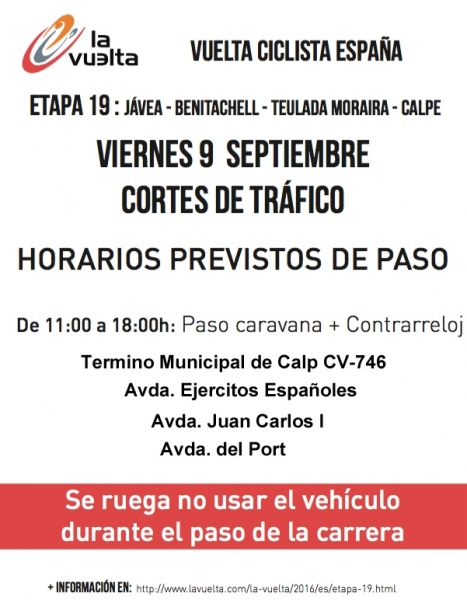 Información de los horarios previstos de paso de a Vuelta Ciclista el próximo viernes 9 de septiembre #calp #vueltaciclista