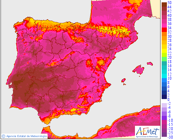 Las temperaturas mínimas también serán significativas en amplias zonas de la península donde los termómetros no podrían bajar de los 25ºC, lo que, traducido, dejará noches con sensación de bochorno.
