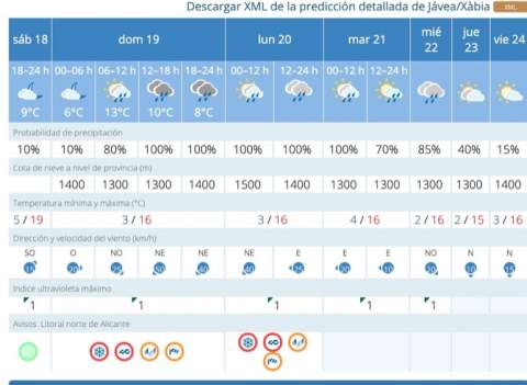 El pronóstico emitido por el Centro de Coordinación de Emergencias de la Generalitat Valenciana y la Agencia Estatal de Meteorología determina la preemergencia nivel rojo por fenómenos costeros y nevadas.