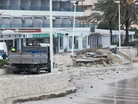 Por otro lado, en la playa del Arenal en la que se han registrado desperfectos en menor medida, se ha producido desprendimiento de piedras, la caída de una palmera y el agua ha llegado a ocupar parte de la zona de arena.