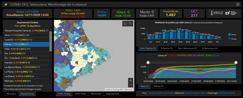 Por otra parte, la Conselleria ha informado que a fecha de este martes hay 1.618 personas ingresadas: 145 en la provincia de Castellón, con 21 pacientes en UCI; 547 en la provincia de Alicante, 107 de ellos en la UCI; y 926 en la provincia de Valencia, 154 de ellos en UCI.