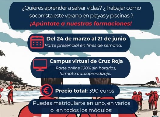 El precio total de los tres módulos es de 390 euros. Para más información e inscripciones, los interesados pueden contactar con Cruz Roja Calp a través del correo acrespo@cruzroja.es o del teléfono 678 502 031.