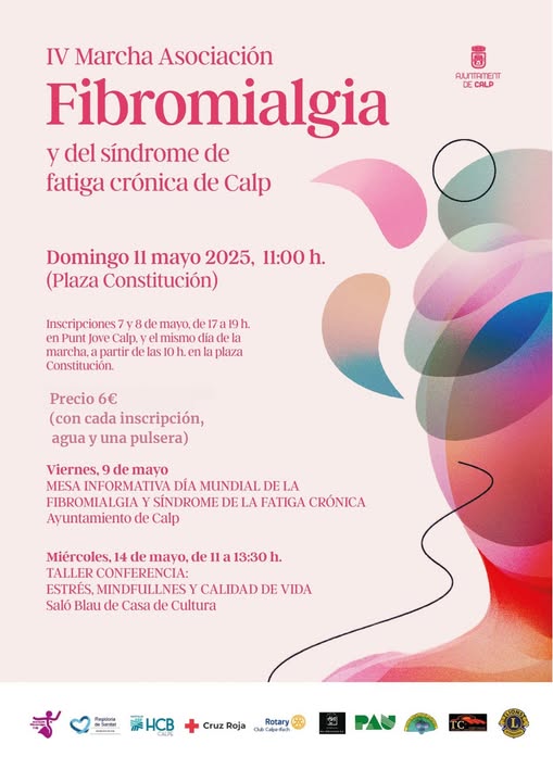 Como parte de la programación en torno al Día Mundial de la Fibromialgia y el Síndrome de Fatiga Crónica, el viernes 9 de mayo se instalará una mesa informativa en el Ayuntamiento de Calp, con el objetivo de sensibilizar a la ciudadanía sobre estas dolencias invisibles que afectan a miles de personas.