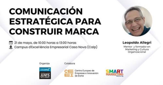 El próximo martes 21 de mayo, el Campus d'Excel·lència Empresarial Casa Nova de Calp será el escenario de la jornada formativa “Comunicación Estratégica para Construir Marca”, un evento gratuito y presencial dirigido a emprendedores y pequeñas empresas de la comarca interesadas en mejorar su posicionamiento y aumentar sus ventas a través de la comunicación de marca.
