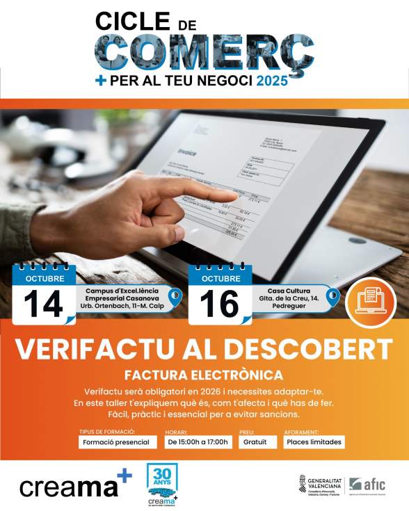 Verifactu, a examen en la Marina Alta: talleres presenciales en Calp y Pedreguer para adaptarse a la factura electrónica obligatoria en 2026