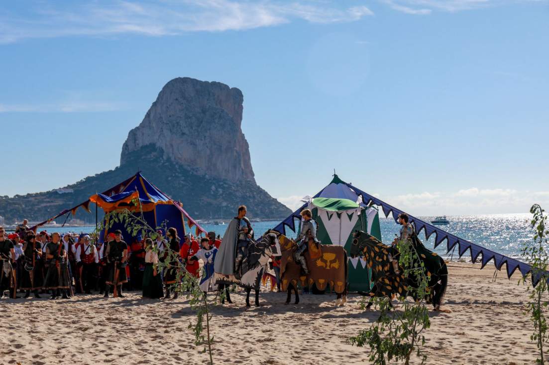 A primera hora, la bahía de Calp fue escenario de la recreación histórica del Desembarco Moro, donde las tropas sarracenas arribaron a la costa entre el estruendo de los arcabuces y el sonido de los tambores. Frente a ellas, las fuerzas cristianas defendieron la villa en una representación que cada año reúne a cientos de espectadores. El acto, cargado de simbolismo y emoción, dio paso a la primera batalla entre ambos bandos, con una puesta en escena que volvió a destacar por su realismo y la implicación de los participantes.
