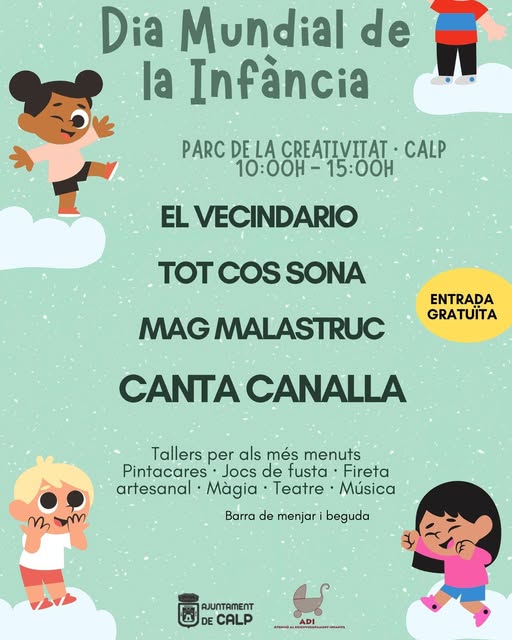 El Ayuntamiento de Calp celebrará el Día Mundial de la Infancia el próximo sábado 15 de noviembre, con una completa programación de actividades gratuitas que llenará el Parc de la Creativitat de alegría, juegos y música entre las 10:00 y las 15:00 horas.