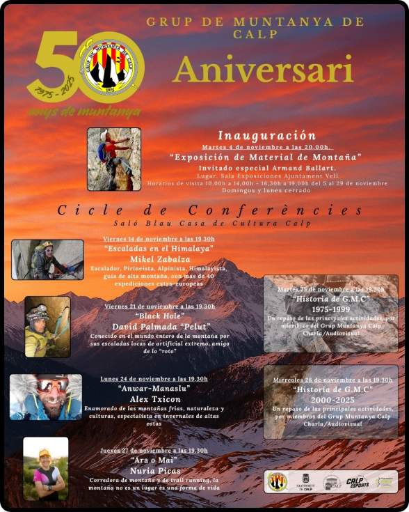 El acto forma parte del completo programa de actividades que el Grup de Muntanya de Calp ha organizado para celebrar sus cinco décadas de historia y que incluye exposiciones, encuentros y un extenso ciclo de charlas con deportistas y especialistas vinculados al mundo de la montaña.