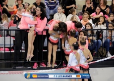 El jueves por la tarde tocó el turno del CONJUNTO BENJAMÍN formado por: Anaïs Marín, Naiara Fernández, Lucy Mann, Carla Jiménez y Valery Guzman, en esta categoría competían 35 conjuntos de un altísimo nivel y nuestras gimnastas realizaron un ejercicio que a pesar de pequeños errores, su difícil y emotivo ejercicio hizo vibrar el pabellón y conquistar la sexta posición a tan solo un punto de las primeras y a bastante diferencia en puntuación de las séptimas. Por lo tanto, el conjunto Benjamín del Club Les Marines es SEXTO DE ESPAÑA.
