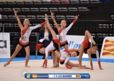 El jueves por la tarde tocó el turno del  CONJUNTO BENJAMÍN formado por: Anaïs Marín, Naiara Fernández, Lucy Mann, Carla Jiménez y Valery Guzman, en esta categoría competían 35 conjuntos de un altísimo nivel y nuestras gimnastas realizaron un ejercicio que a pesar de pequeños errores,  su difícil y emotivo ejercicio hizo vibrar el pabellón y conquistar la sexta posición a tan solo un punto de las primeras y a bastante diferencia en puntuación de las séptimas. Por lo tanto, el conjunto Benjamín del Club Les Marines es SEXTO DE ESPAÑA.