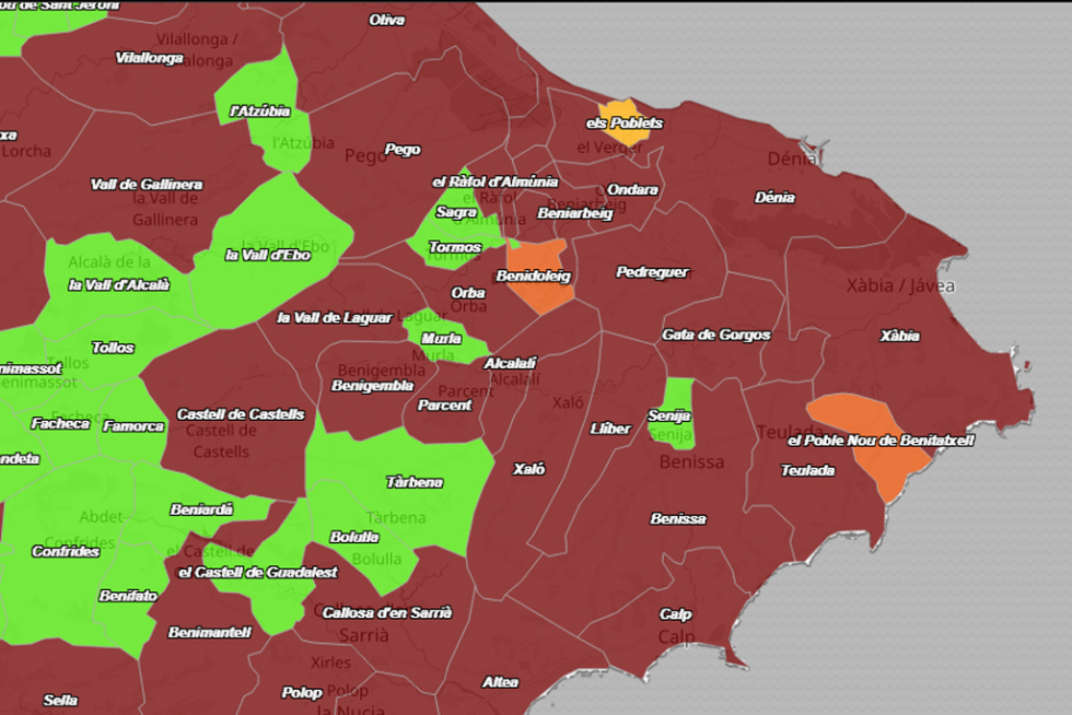 17 localidades de la Marina Alta en riesgo extremo de contagio de Covid-19