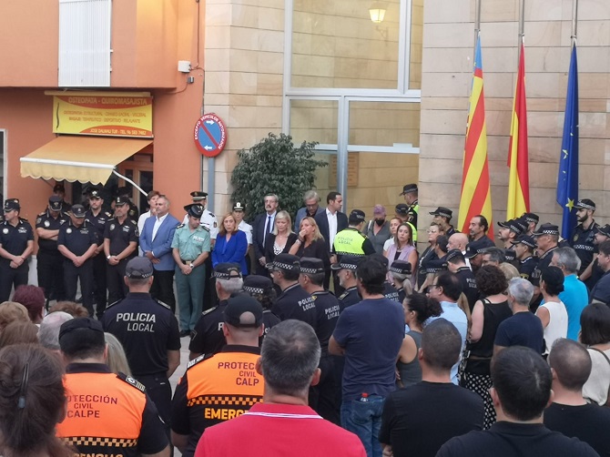 Calpe ha guardado hoy cinco minutos de silencio en memoria y homenaje al agente de la Policía Local Juan Manuel Policarpo Moll, fallecido ayer en acto de servicio