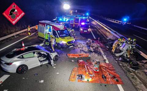 Los Bomberos han sofocado las llamas del vehículo y la circulación se ha restablecido. Al parecer, según fuentes consultadas, el fuego se ha producido por un fallo eléctrico.