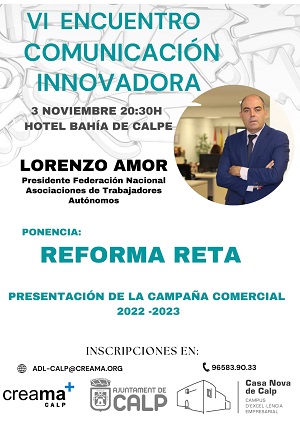Calpe acoge mañana el VI encuentro de Comunicación Innovadora con la participación de Lorenzo Amor, presidente de la Federación Nacional de Asociaciones de Trabajadores Autónomos, que centrará su ponencia en la reforma RETA.