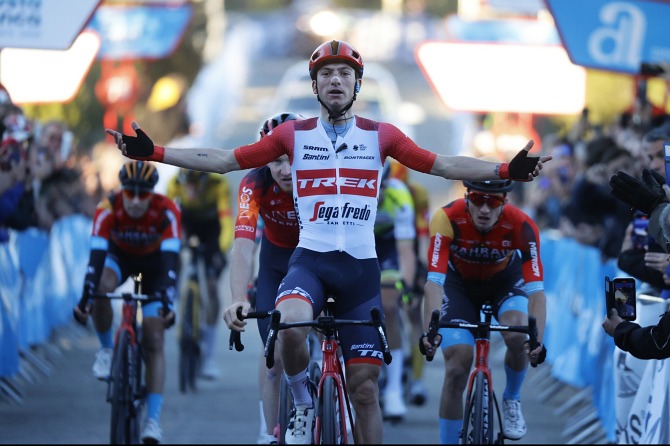 El ciclista italiano del Trek-Segafredo se impuso ayer en la etapa más montañosa de la VCV 2023, exhibiendo su mejor virtud, la velocidad, ante escaladores de postín como Aleksandr Vlasov, Teo Geoghegan Hart, Mikel Landa o Pello Bilbao.