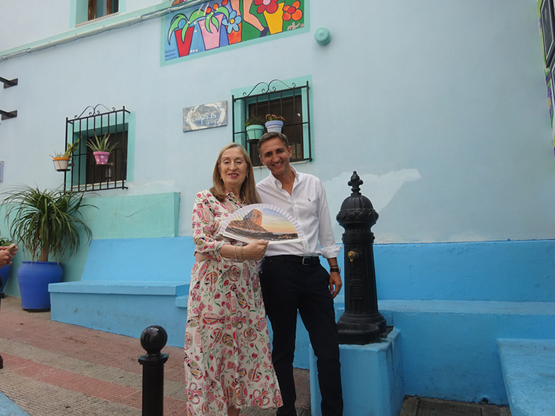 En su visita la exministra de Fomento ha podido conocer los detalles del mural dedicado a las personas de más 90 años de la localidad, que le ha explicado tanto Sánchez como la concejal de Cultura, Pilar Cabrera y ha recibido y un detalle de parte del PP local: Un abanico con un dibujo del Peñón de Ifach, que la popular se ha comprometido a lucir en la próxima sesión en el Congreso de los Diputados.