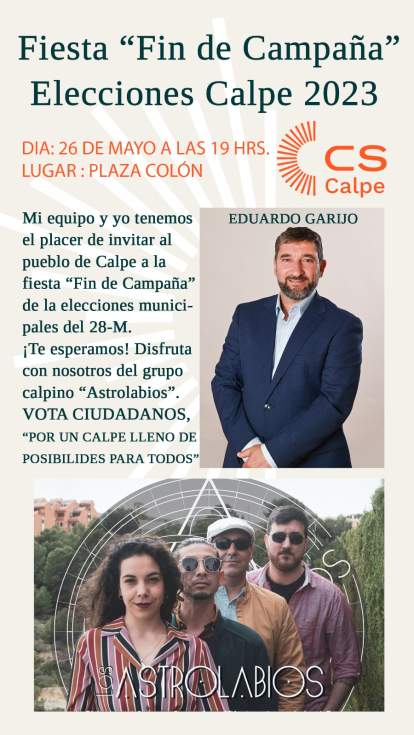 Ciudadanos quiere poner punto y final a esta campaña con una jornada festiva en la que habrá música en directo por parte del grupo calpino "Astrolabios".