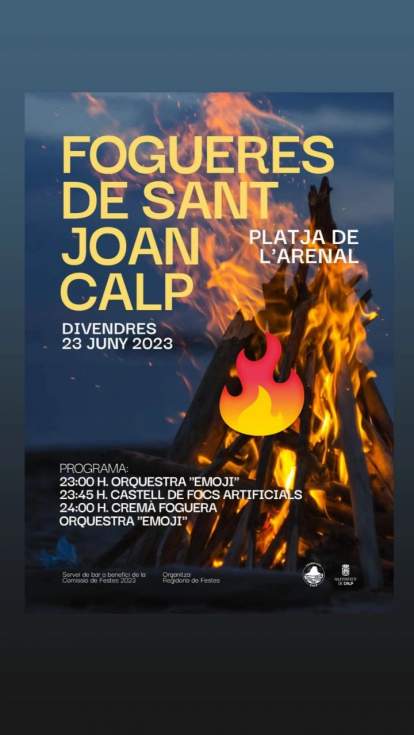 Todo a punto ya en Calp para celebrar una de las noches más especiales del año: la noche de San Juan. Habrá música, fuegos artificiales y la tradicional cremà de la hoguera. Habrá servicio de bar toda la noche a beneficio de la Comisión de Fiestas 2023.