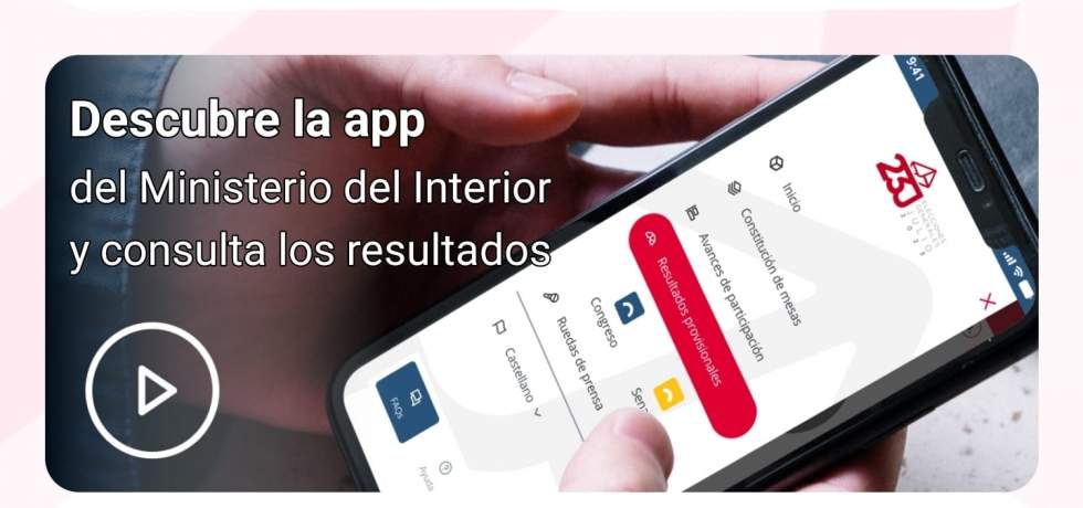 Los resultados provisionales de las elecciones se podrán seguir también en tiempo real a través de la web resultados.generales23j.es, así como en la app oficial del Ministerio del Interior, 23J Elecciones Generales 2023, disponible para dispositivos iOS y Android, que ofrecerán información también sobre la constitución de las mesas electorales y los avances de participación. Así mismo, los usuarios podrán seguir en streaming las ruedas de prensa.