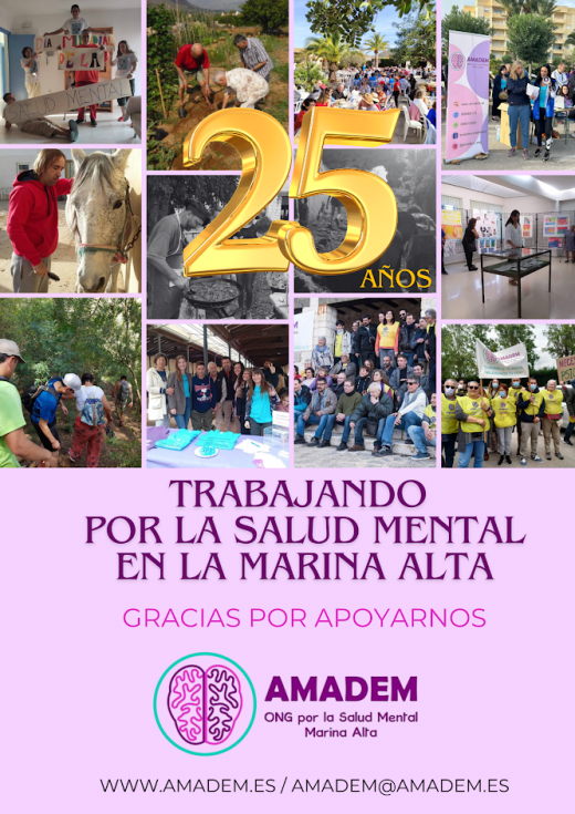 Recordemos que no habrá Salud posible, sin Salud Mental, y para tener una buena atención, recursos, información y educación en este tema, necesitamos contar con el apoyo de todas las personas que conformamos la Marina Alta. Será la única vía posible para poder llegar a ser una sociedad más sana mentalmente, con una juventud con posibilidades, herramientas internas de afrontamiento, y entornos saludables.