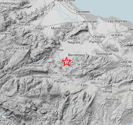 La tranquila mañana de este lunes en la localidad de Orba se ha visto ligeramente alterada por un pequeño seísmo de 1,6 grados de magnitud en la escala de Richter. Según ha informado el Instituto Geográfico Nacional, el movimiento sísmico se ha producido a las 6:41 horas, en una zona montañosa del término municipal a una profundidad de 22 kilómetros.