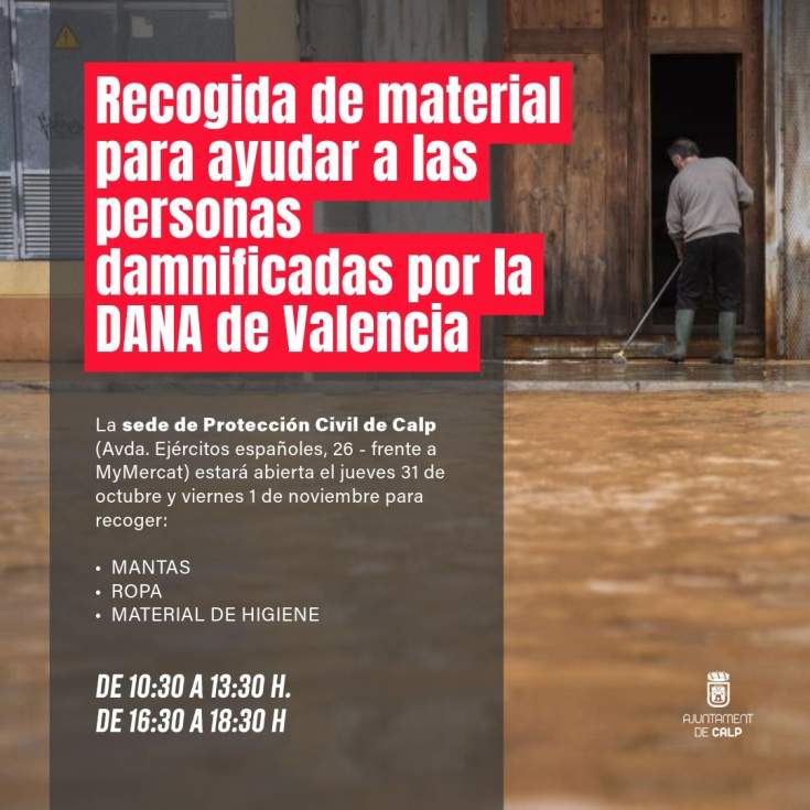 Ante los graves efectos de la reciente DANA que ha impactado a varios municipios valencianos, Protección Civil de Calpe ha lanzado un llamamiento a la ciudadanía para colaborar con material de primera necesidad destinado a las personas damnificadas.