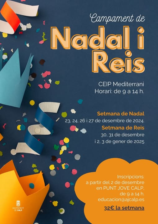 El Ayuntamiento de Calp ha anunciado la organización de un Campamento de Navidad y Reyes, pensado para que los más pequeños disfruten de actividades lúdicas y educativas durante las vacaciones escolares.