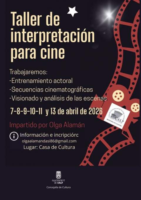 Calp acogerá el próximo mes de abril un taller de interpretación para cine organizado por la Concejalía de Cultura, que será impartido por la [...] Leer más...